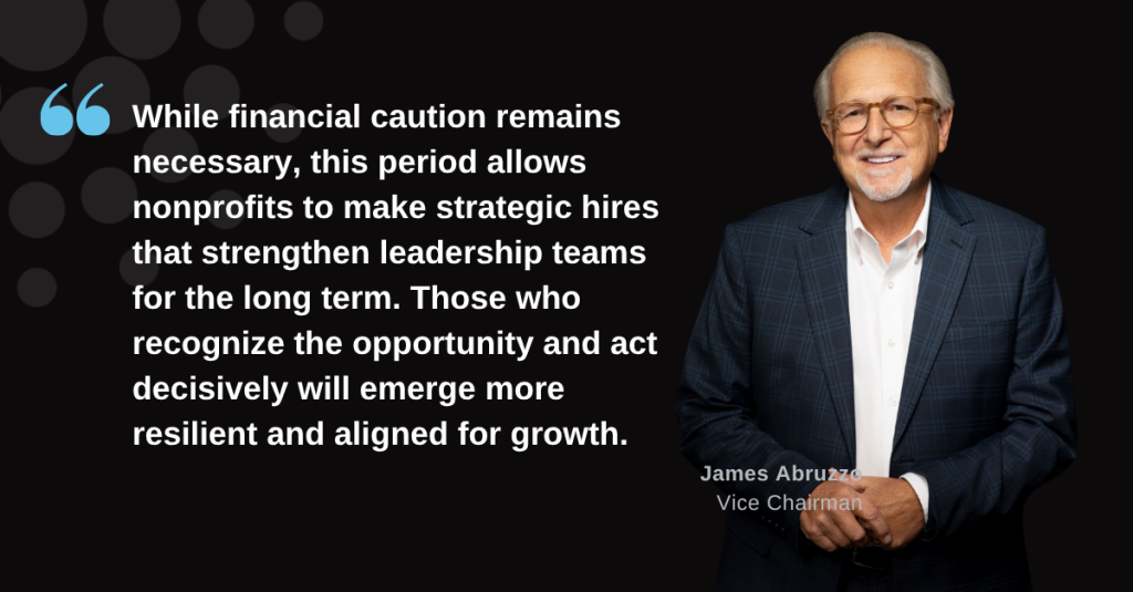 While financial caution remains necessary, this period allows nonprofits to make strategic hires that strengthen leadership teams for the long term. Those who recognize the opportunity and act decisively will emerge more resilient and aligned for growth. Periods of disruption often produce renewal. This one offers a chance to build capacity for the future.