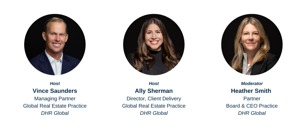 DHR Global’s Vince Saunders and Ally Sherman from the Global Real Estate Practice hosted a webinar for real estate professionals interested in joining corporate or nonprofit boards or expanding their board experience.